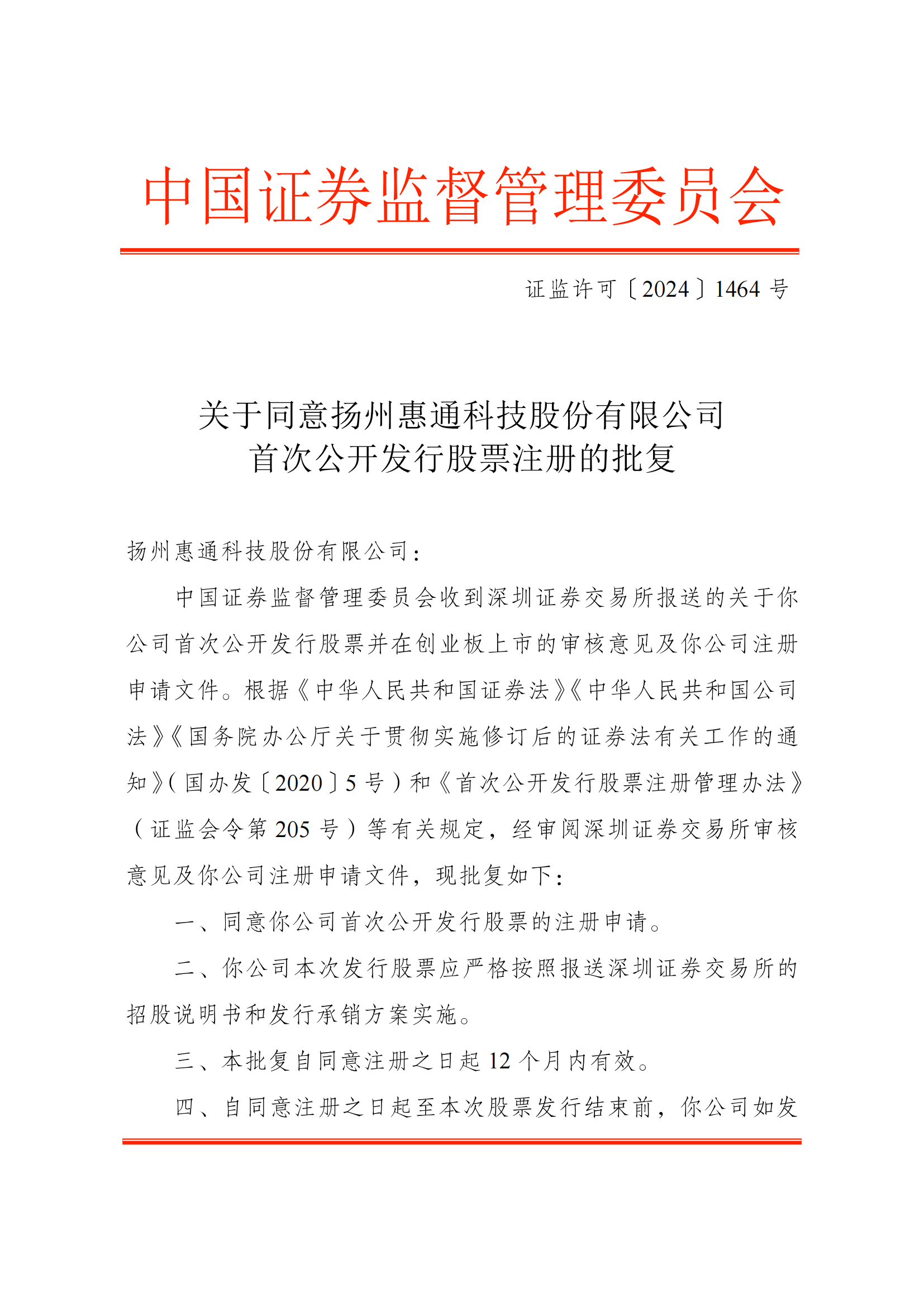 惠通科技獲證監會同意首次公開發行股票的批復